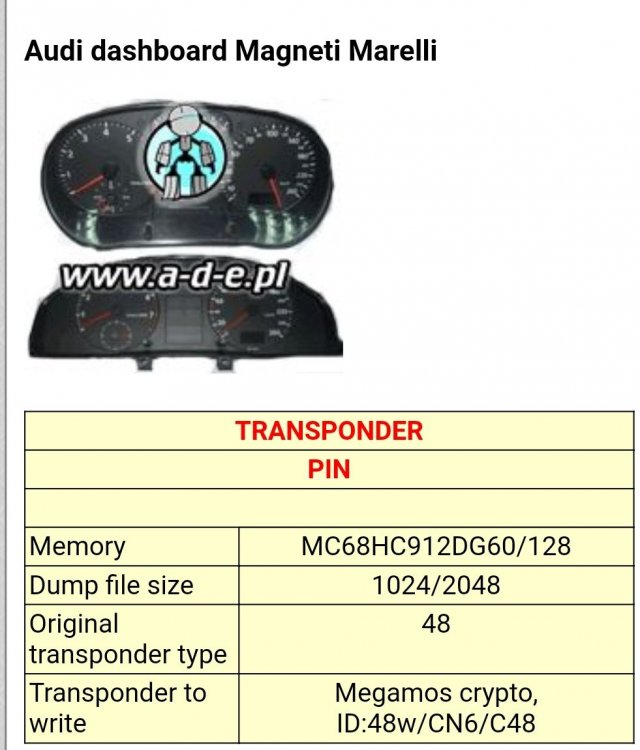 Всем привет! В работе VW Passat B5 1999 г. Требуется подвязать новую приборку Magneti Marelli M73 по штатному. Внутри процессор Motorola MC68HC11KG4. Область eeprom считал UPA-USB оригинал. Помогите с пин кодом и вообще дамп адекватно считался? Пин код 01319 приборка не принимает. Была попытка перелить еепром из старой приборки в новую, появилась надпись на дисплее FAIL , пробег стал в два раза больше чем на старой и лампочка иммо перестала моргать. MC68HC11KG4_VW B5_DASH_ORI.bin