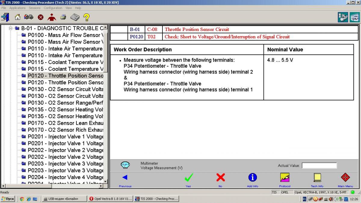 Opel Vectra B 1.8 16V X18XE 1997 ошибка P0120