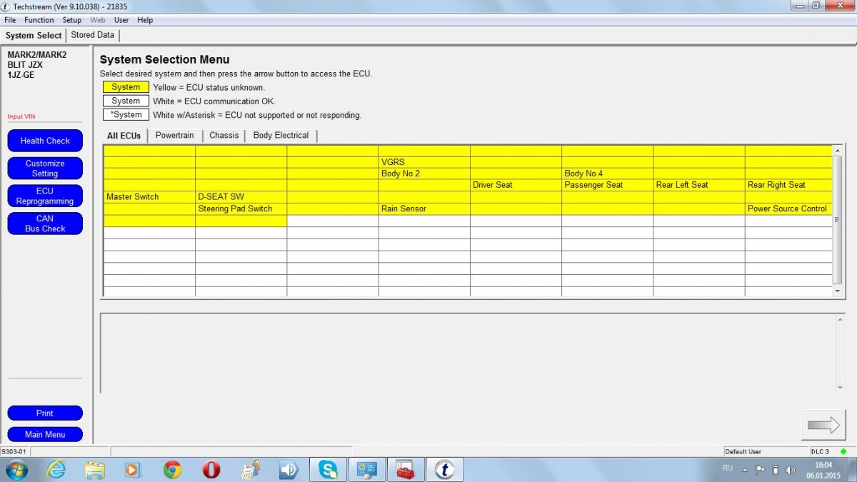 Регион конечно японский. Авто Mark 2 JZX100 1997 г.в. Машину определяет правильно и быстро, но вот в блоки не дает заходить. В проге Torque через ELM 327 все работает отлично. Почему не работает Techstream через mvci?