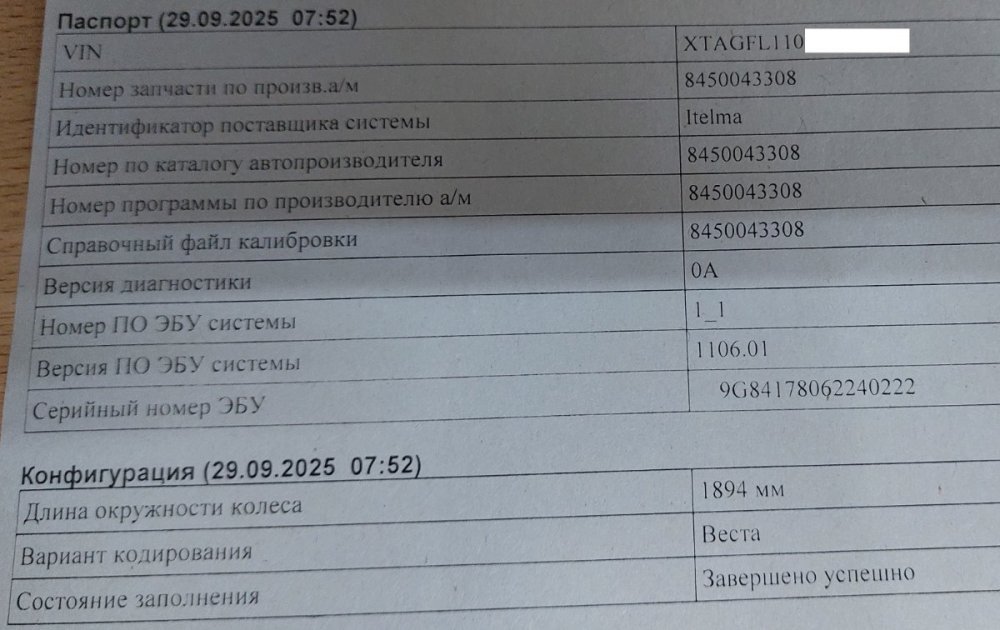 Лада веста НГ 2024 пробег 30000км блок АБС Итэлма 8450043308 замена
