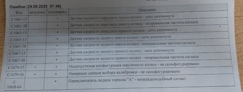 Заменен был блок на новый, для кого то будет полезной информацией, с помощью сканматика была изменена конфигурация: - длина окружности колеса - 1894мм - вариант кодирования - Веста - Состояние заполнения - завершено успешно В итоге новый АБС заработал. Спасибо кто откликнулся.