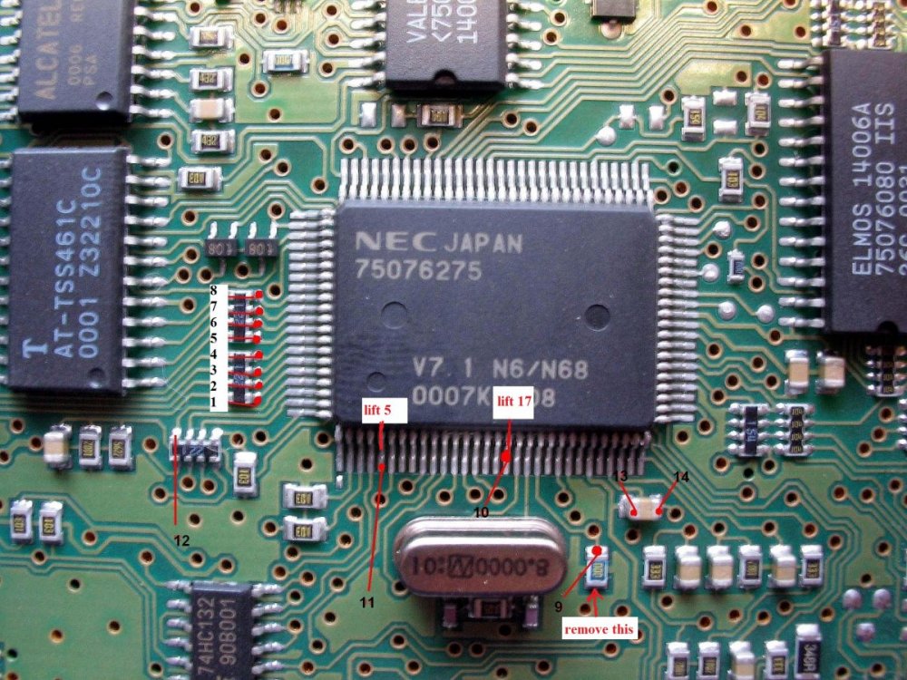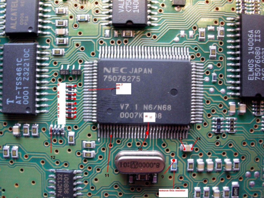 Всем привет проблема следующая, нужно прочитать nec 75076289(780949) в блоке BSI для чтения пин кода !Подключил upu usb+nec припаял 14 проводов резистор 0 убрал 17 контакт поднял упа пишет ошибку Pin 9: Connection error всё перепробовал ! Может есть кто сталкивался с такой проблемой помогите уже неделю мучаюсь !Фото подключения прилогаю :(по энигме тожа пробовал)