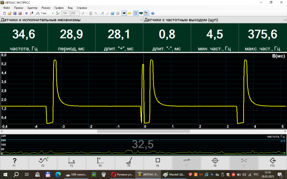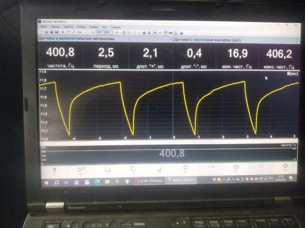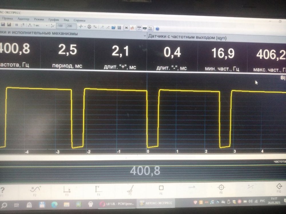 Mazda6 2005 1.8, периодически сама газует примерно до 3000об. Ошибок чаще нет совсем, но иногда вываливается P0638 Throttle Actuator Control Range Perfomance. Как вызвать - непонятно, иногда весь день нет проблем. Сопротивление дросселя что когда исправно, что когда неисправно - 1.6Ом, показания ДПДЗ в обоих случаях идентичны, как и АЦП датчиков педали. ТОЖ адекватна. Но в тот момент, когда газует, осцилка управления ЭДЗ сильно отличается. ЭБУ и ДЗ подкидывал другие - проблема не уходит. Когда все в порядке, на одном проводе "пила" небольшая, а по факту нам плюс с такими вот колебаниями. На втором проводе прямоугольный ШИМ и скважность меняется от нажатия на педаль газа. Когда же оно не работает, вместо питания какие то всплески от 0 до 5вольт, а на проводе, где ШИМ - вообще непонятный сигнал висит. Прошу ваших наводящих вопросов и мыслей. Вот осцилка на заглушенном авто, когда все нормально.