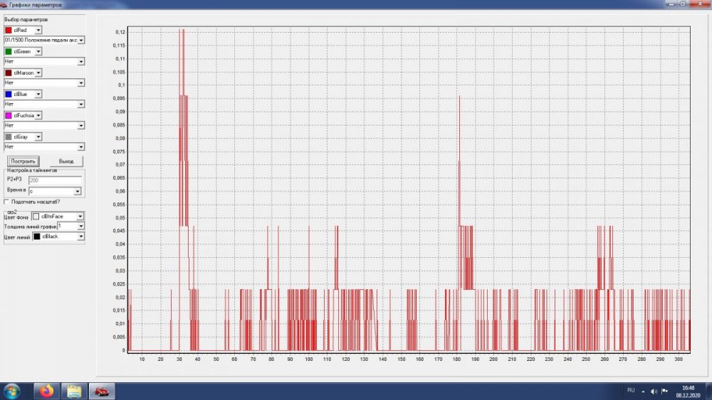 1. Снял логи с Весты 1.6 ЭБУ М86, перенёс логи с андройда на компьютер, в программе ReadLogs3351 выбираю профиль М86, открывается таблица, нажимаю построить график параметров, выбираю например напряжение на ДК2 и вижу на графике прямую линию с уровнем 1.27В с периодическими вертикальными пиками до 23В. Выбираю что то другое и там тоже такие тычки выше 23В. При этом листая по таблице лога, таких скачков не вижу. Это какие то сбойные участки ответов или особенность логов, может быть программы анализатора логов. Как убрать эти непонятные скачки из лога? LOG.rar