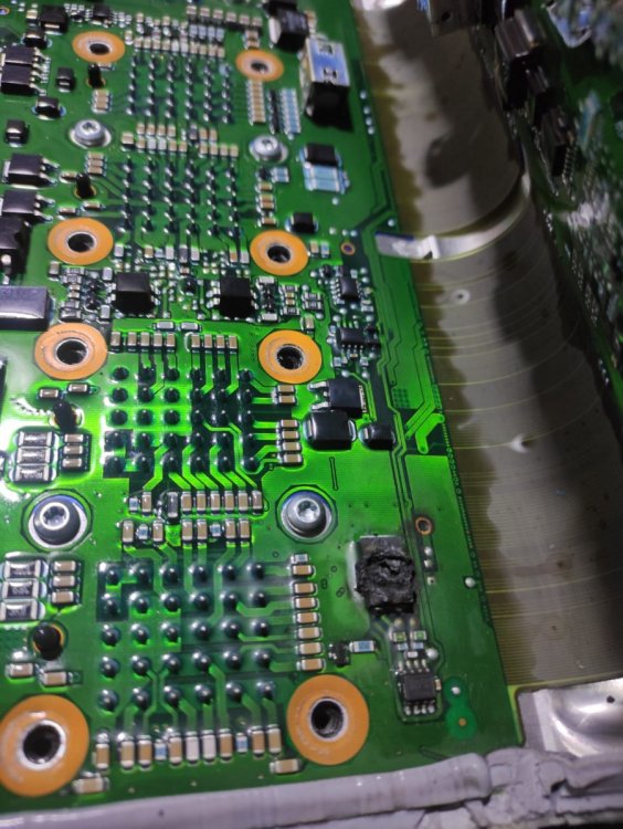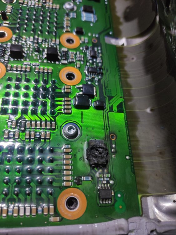 Здраствуйте. ЭБУ CM2150 cummins, на авто перестал работать регулятор давления топлива (стоящий в ТНВД). проверив проводку было решено вскрыть ЭБУ. После вскрытия было обнаружено что шунтирующее сопротивление на один из выходов ДРДТ сгорело, (Раскрылась как розочка) опознать его не возможно. Может кто знает какого номинала оно там стоит или может у кого есть качественные фото блока. Фото с местом положения шунта прилагаю