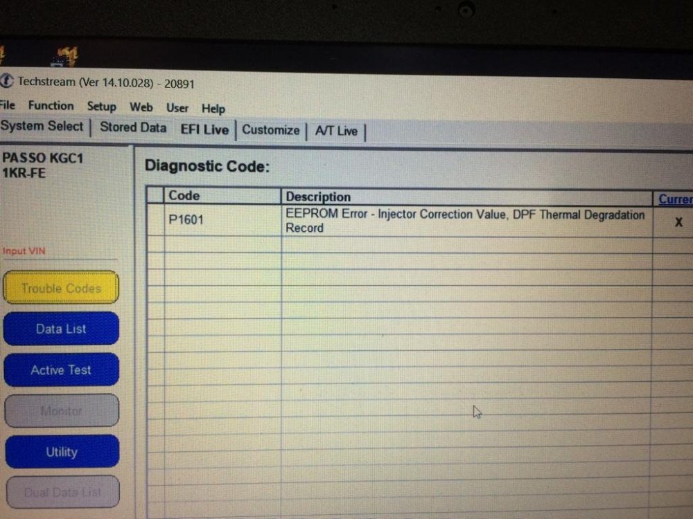 Toyota Passo 2004,KGC1 , 1kr-fe нет запуска , Р1601