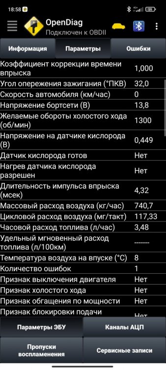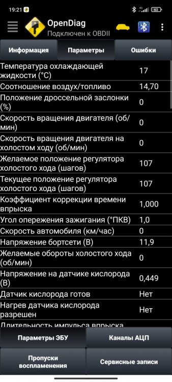 Сейчас еще интересный момент был. Завел, движек колбасило и вдруг обороты выровнялись, поднялись. Скинул ошибку и опять упали...