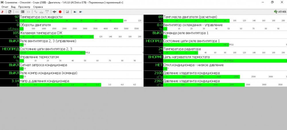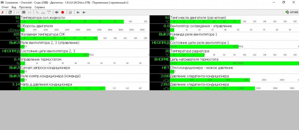 Chevrolet Cruze 2014 1,4Т АТ электронный термостат - после прогрева до рабочей температуры включается 1-ая скорость вентилятора охлаждения и больше не выключается, выключаю зажигание, остужаю, завожу - работает, если снять клемму аккумулятора на 5 минут, то при запуске вент не работает, пока опять не прогреется. Что было сделано - поменян термостат, датчики температуры в блоке и радиаторе - без изменений, температуру показывают правильно, подкинул моторник, сделав клон -без изменений. Прошу пнуть в нужном направлении