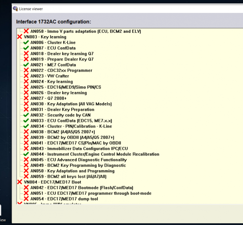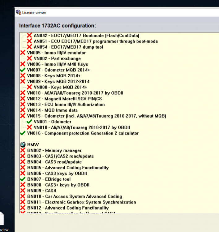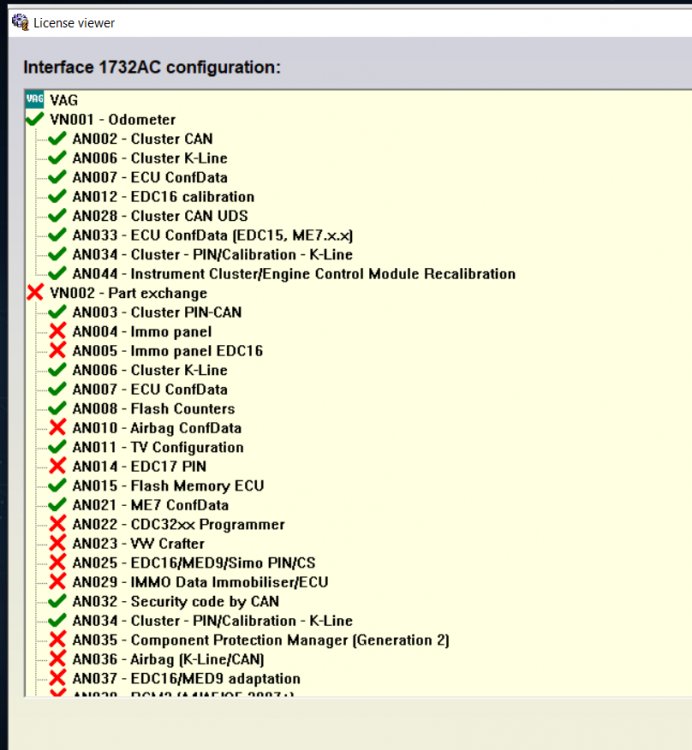 Продам клон smok x-can, старый интерфейс, не UHDS. Открыты все лицензии, версия софта 3.099.0.7 (от 21.03.2013-го). Цена 16 000 руб. Список лицензий на фото. Из плюсов - работает по obd, не валит панели, доступно repair flash в некоторых случаях, вычитывает eeprom, делает NEC + 24c64 на тигуанах с цветными приборками. Из минусов - не взял CDC3217 + 24с32, не смог обнулить dsg6. Работал им очень мало. Причина продажи - перекрыт другим оборудованием.- Open-Port 2.0