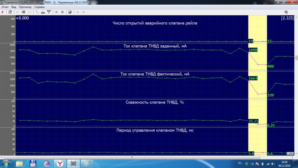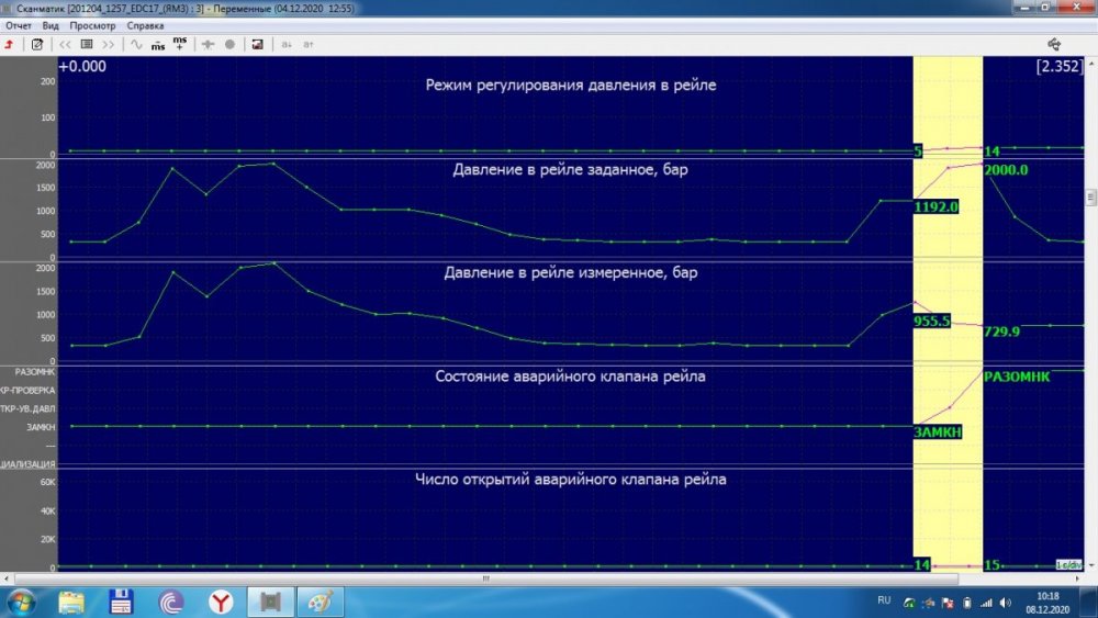 Гоняли в очередной раз ПАЗ в Симферополь, в сервисный центр. Там нам залили новую прошиву 20-го года, и машина поехала, поехала домой в Евпаторию!!!! благополучно переночевав в гараже устремилась на работу в 5:00 по городскому маршруту. через пол часа со звонком от водителя, я узнал что наш ПАЗ снова рыганул. Все те же симптомы, все тот же аварийный режим. Прикрепляю данные со сканмата на момент возникновения проблемы на ходу(работа-авария выделено)