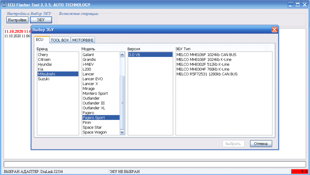 MH8304F - с 2007 Colt, Pajero, Galant чтение и запись ecu по CAN BUS.