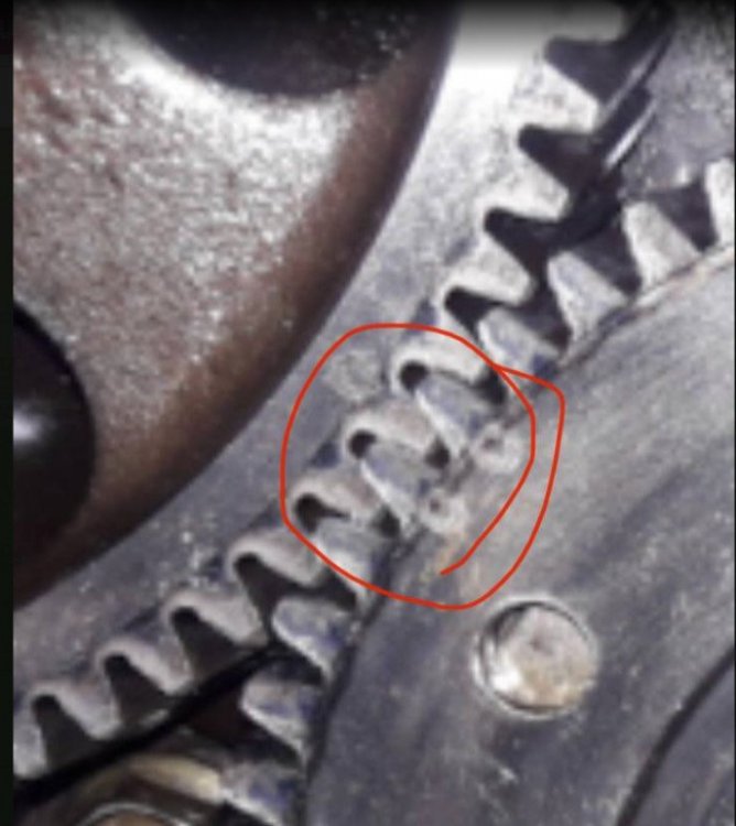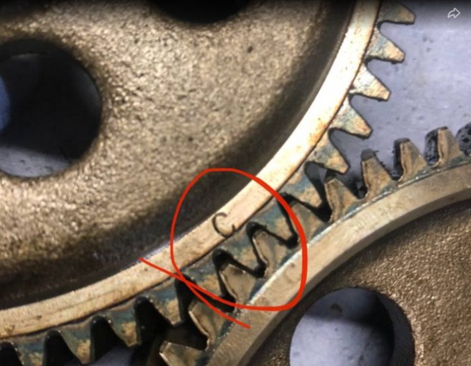 Добрый вечер. Парни Кому интересно. Машина приехала с чеком. Более я от своих мастеров ничего добиться не смог на что жаловался клиент. Дубы мля колдуны или пикачу ( кака я их называю) Не растягивая. Снимаю осциллку. МТ про. 4 .зуба. Прошу разобрать морду. Чую ну не перескок это цепи. Мля они не выставляя снимают Шестерни три больших. Хорошо парень молодей думающий. Заставил сфотографировать сопряжения этих трех шестерен .И вот что получили. Задающий диск на колене впереди на шкиву 60-2. Вот так должно быть. Смотрим не на метки а на зубья.