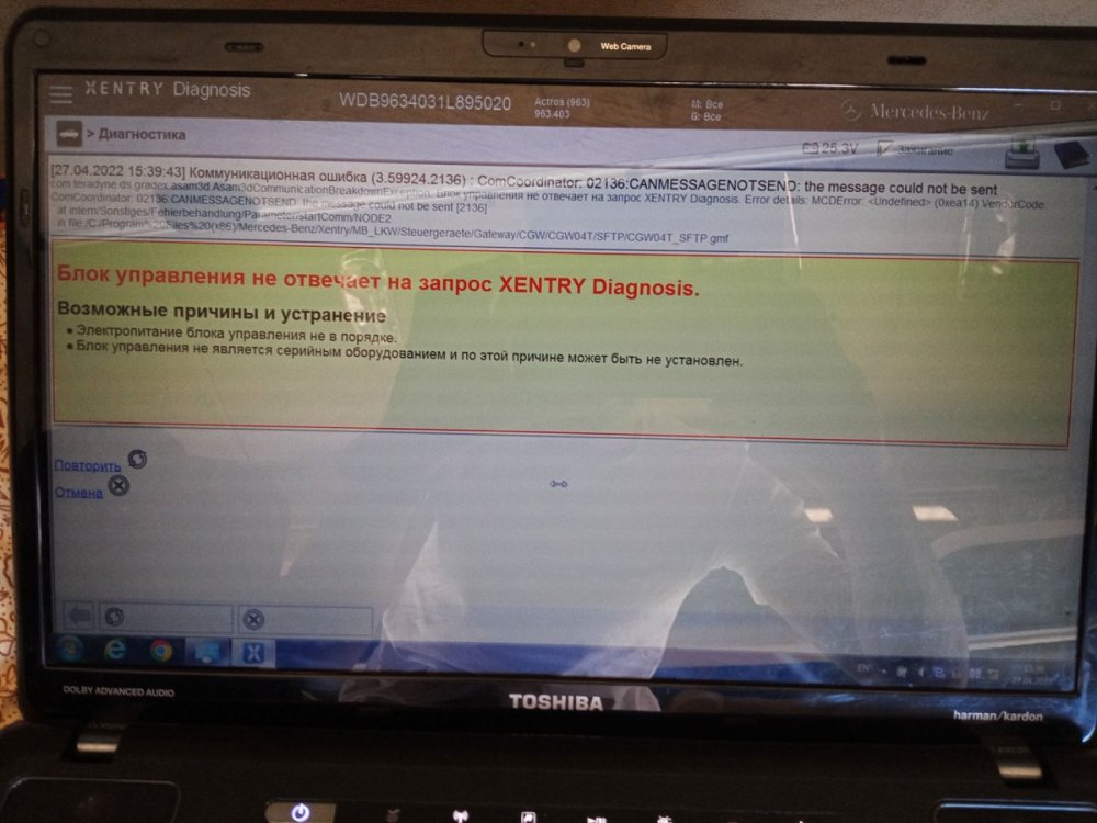 Всем здорово народ, во время диагностики грузового автомобиля в программе (Xentry diagnosis 2017), получаю вот такую ошибку на 4 этапе что делать дальше честно не знаю, где я допускаю ошибку исправьте пожалуйста меня чтобы я мог устранить неполадку