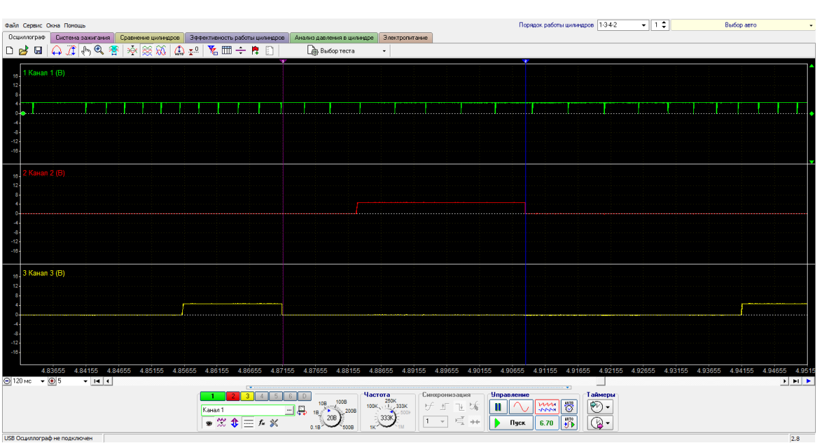 катушками управляет, искра появляется, а форсунками не могу т.к нужно двигатель завести