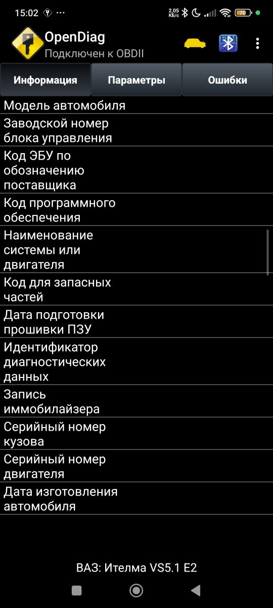 Доброго времени суток, господа, возник такой вопрос, используя приложение OpenDiag - не получается прочитать машину с помощью ELM327 (две платы, версия 1.5). Авто - Ваз 21120 2003 г.в. на машине стоит ЭБУ Ителма v.s 5.1 E2, как писал прошлый владелец - шитый, но, с помощью древнего оборудования получалось без каких-либо проблем прочитать ЭБУ. Вот что выдает OpenDiag при ручном выборе (автоматический выбор результата не даёт, пришлось поиграть в опциях для такого результата. Также дополню, что я уже пробовал и другие блоки повыбирать - результат такой же): Также была сделана перемычка на иммобилайзер, K-линия выдаёт 12В. Бортового компьютера нет. (дополню, что использую GM12-OBD2 переходник, работает всё исключительно на запущенном авто, на не запущенном ELM-ка горит красным, но не подключается, как я понял, что переходник запитан на бензонасос, а не на постоянный плюс, не знаю сильно ли играть это роль, но пытаюсь выложить всё, что есть) Было замечено, что при перемычки (не смотрел как без неё, изначально иммобилайзер был подключен) ELM и иммобилайзер мерцают в такт. Благодарю за внимание, надеюсь на вашу помощь!