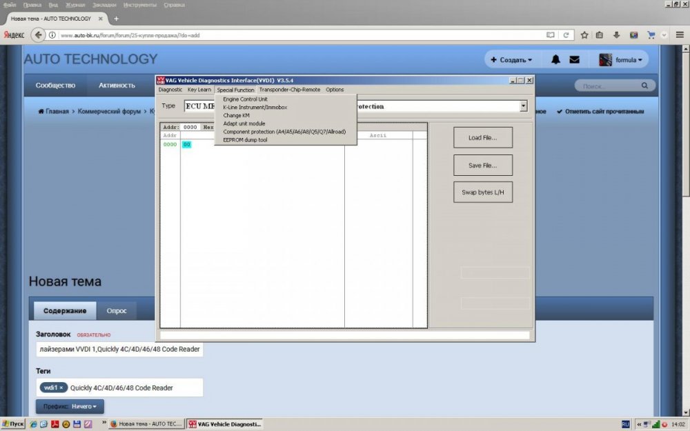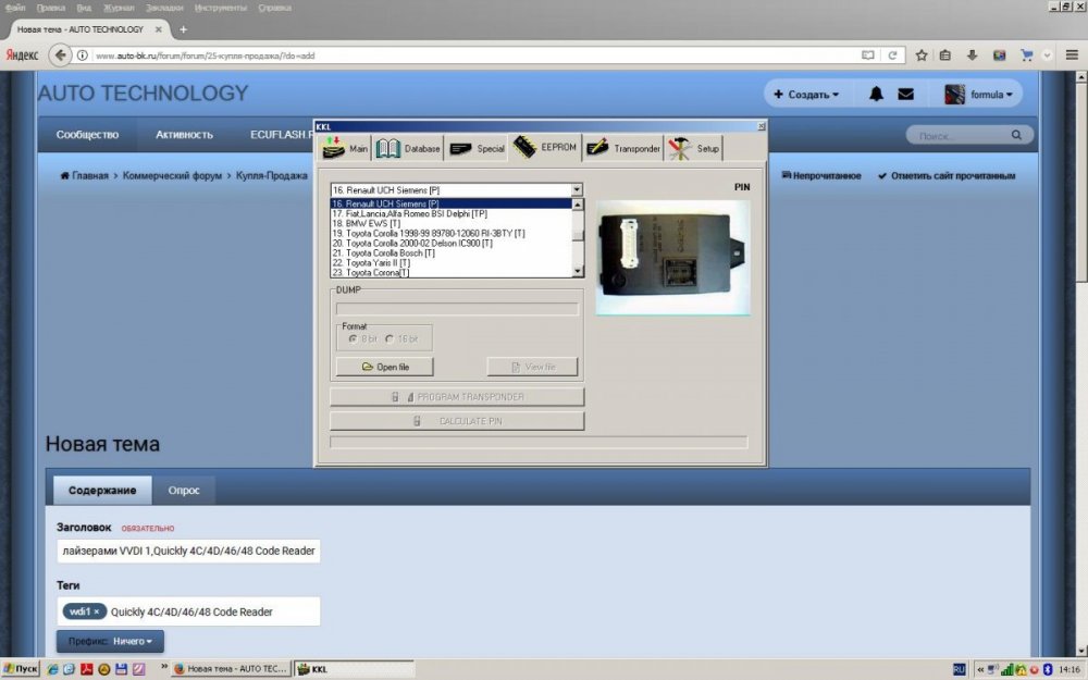 1.Продам оборудование: VVDI 1 диагностика VAG ,работа с иммо 4 поколения добавление ключей,корректировка пробега приборных панелей итд ,работа с дампами, подсчетом CS,блоками управления дв. итд , чтение,запись, подготовка Транспондеров, immo data tool по дампу на различные модели авто.Прибор не обновляется.но очень актуален еще на рынке.Комплектация-основной блок,антенна,OBD2 кабель.Цена 25000 руб. 2.Quickly 4C/4D/46/48 Code Reader Chip Transponder Auto Key Programmer автономный прибор для чтения записи Транспондеров,поддерживает чтение Toyota H chip,проверка частоты пультов ,потенциал прибора до конца мне не известен!Так же работает с старой прогой-чтение запись Транспондеров,работа с дампами,подготовка Транспондеров,прога под старые авто.Даже добавлял ключи на старенькие авто по дампу иммо.Комплектация как на фото.Цена 6000 руб.Окончательная цена является предметом переговоров)))