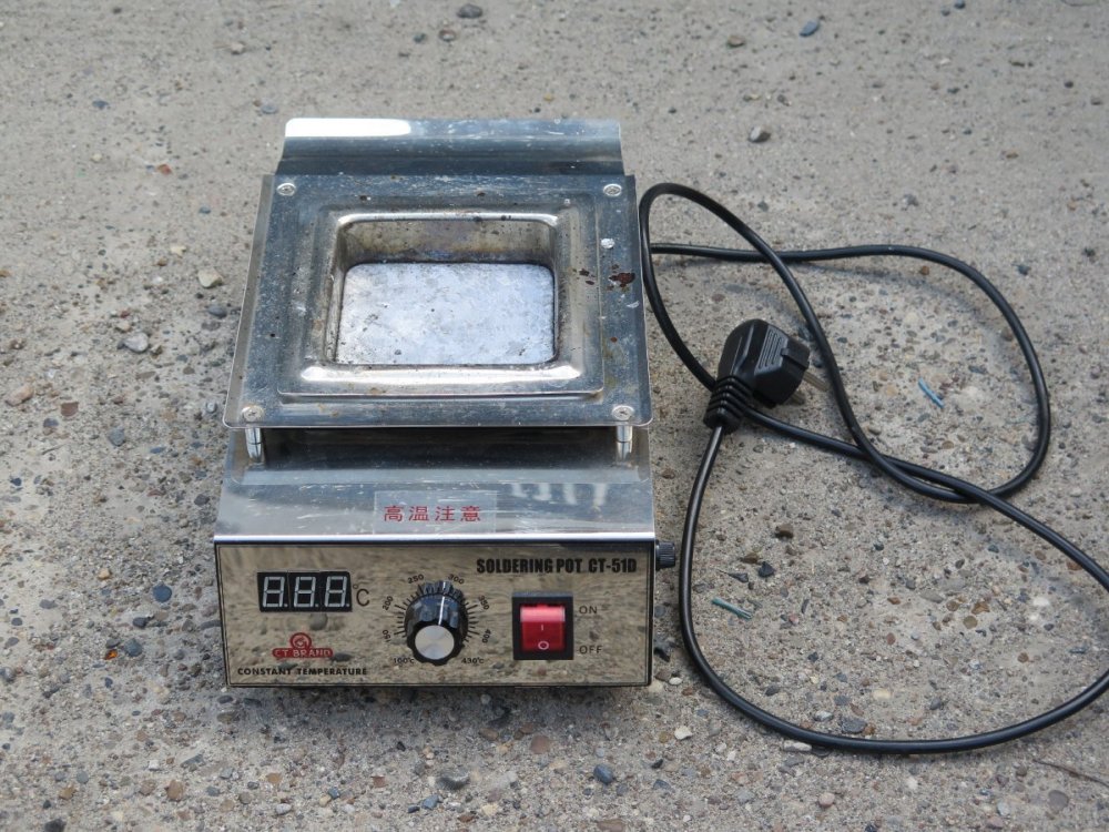 Неспешно продается паяльная ванна CT-51D 500Вт, в комплекте в ванне 3 кг припоя. В отличном рабочем состоянии. Практически новая, использовалась пару раз для пропайки "генераторных" наконечников проводов. Производитель: CT-Brand (КНР) Размер: 100х100 Габариты тигеля: D=100мм х 100мм x 45мм(H). Диапазон рабочих температур 100-430С. Предназначается для лужения выводов электронных компонентов методом окунания, в том числе демонтированных микросхем для повторного их использования. Усовершенствованная паяльная ванна нового поколения. В данной модели есть цифровая индикация температуры (В паяльных ваннах CT-51A и CT-51B - только LED-индикация нагрева). Материал тигеля - нержавеющая сталь. Точная система регулировки температуры в широком диапазоне. Продам дешевле цены припоя - 10 т.р. Любая доставка за счет получателя.