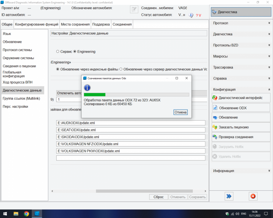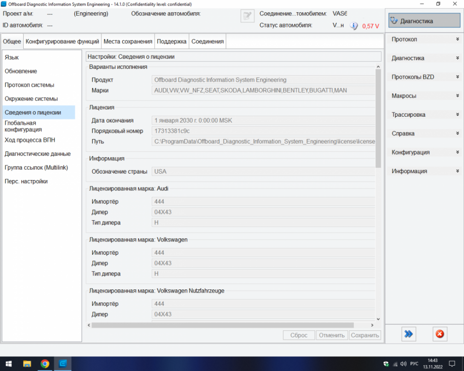 Год/Дата Выпуска: 2022Версия: 14.1, PostSetup 1401Системные требования: Windows 10/11 x64Язык интерфейса: Многоязычный (русский присутствует)Таблэтка: присутствуетОписание: ODIS Engineering – это программное обеспечение, созданное для работы с VAG, которое пришло на смену VAS PC. Производит работу со всеми авто марок Audi, Volkswagen, Seat, Skoda, Lamborghini, Bentley, MAN в том числе с новейшими моделями 2022 года.ПО предназначено для выполнения кодирования, адаптаций и настроек электронных блоков управления, перечисленных авто. Парни выложил torrent. У кого нет возможности зайти на rutracker.org. ODIS Engineering 14.1 [2022] [rutracker-6282106].torrent