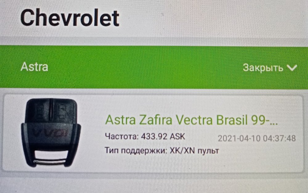 Сevrolet Viva (AstraG) 2005 пульт Xhorse XKKF02N