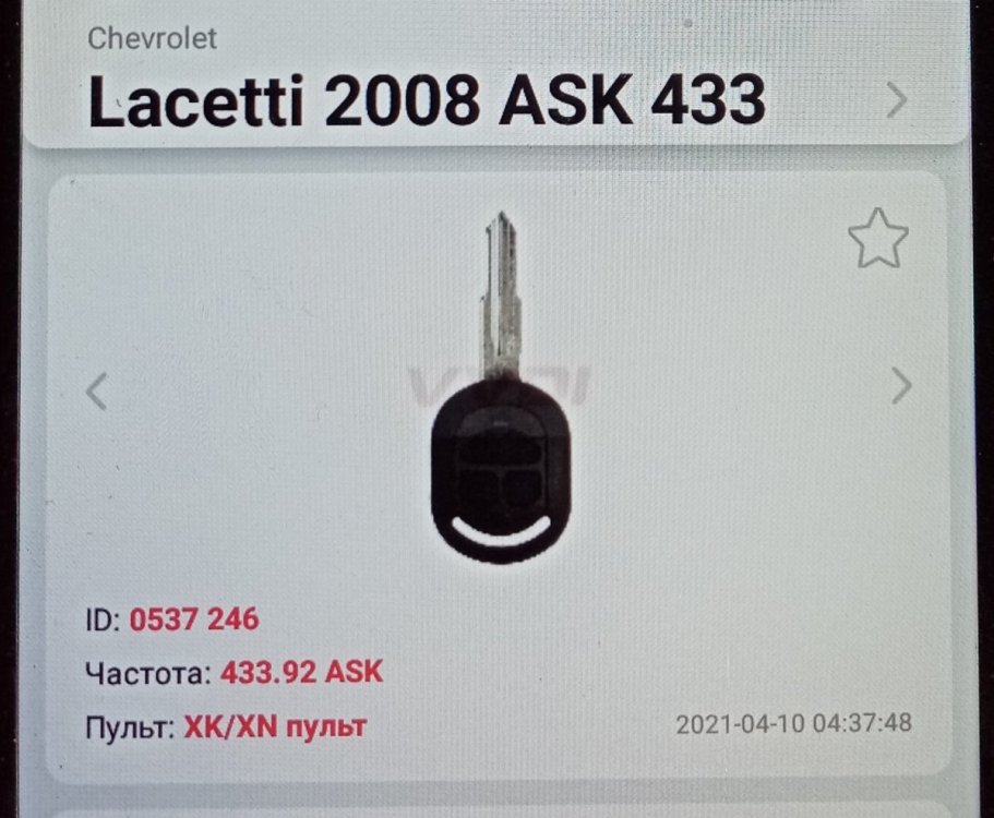 Ещё вопрос - не нашёл именно на виду пульт... Если использовать допустим от лачети прокатит? Частота и модуляция та же.- Сevrolet Viva (AstraG) 2005 пульт Xhorse XKKF02N