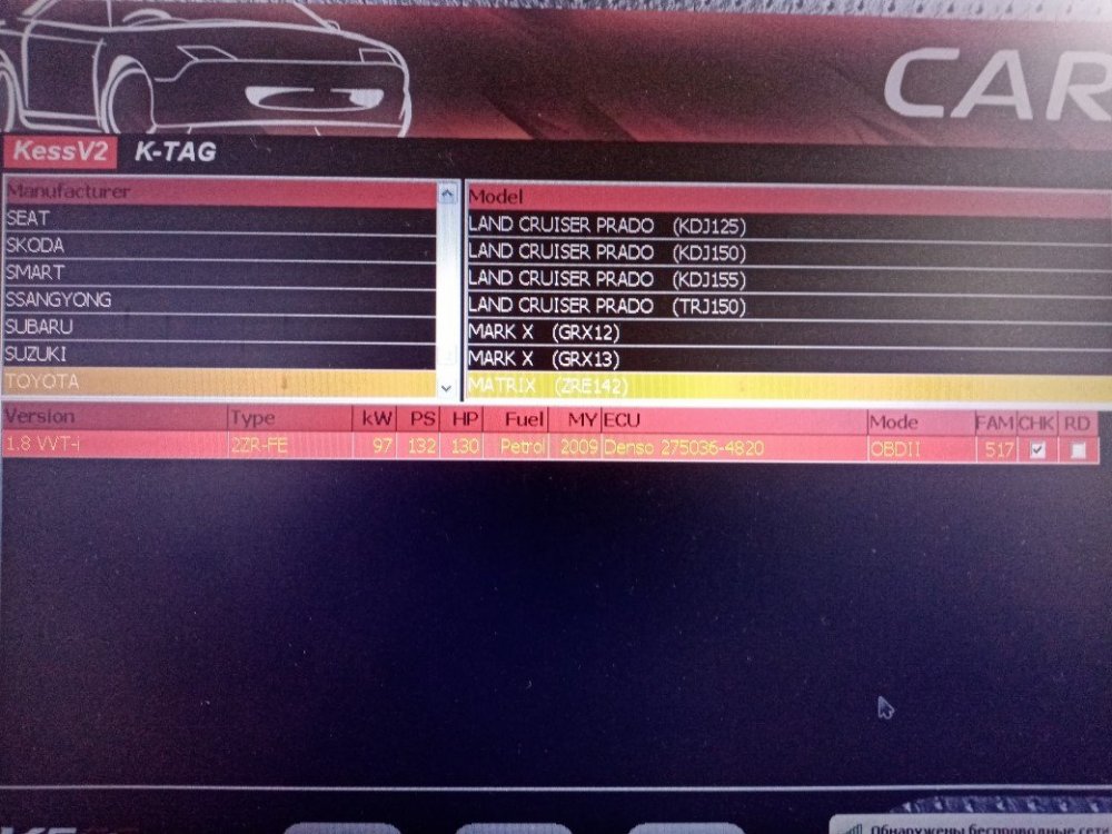 - Toyota Matrix посчитать контрольку (Kess не хочет)