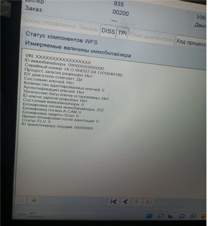 Добрый день, вот и настало время написать на форум. А то в далеком 2013г. наставили мне минусов в репутацию..😀 Ну а теперь по теме: Обратились ко мне с такой проблемой, passat b7. восстанавливают после дтп, не заводится. поменяли блок BCM ( был разбитый) и рулевую колонку соответственно с ELV. Что сделал я. На скорую руку сегодня пробежался по блокам. Плату ELV переставил на родную, осталась цела. от ошибки избавились по нему. bcm кодировки пока не трогал, я так понимаю и на не родном она должна завестись. Блок комфорта остался родной, считал дамп, высчитал пин 46554 ( по возможности прошу проверить на корректность, дамп прилагаю). passatb7_comfort_95360.bin Но в чем собственно заключается проблема:1. в иммо висит постоянная ошибка 01176. 2. пин блок не принимает, (собственно по этому прошу проверить корректность). Но что собственно смущает так это то что в параметрах иммо висит "Количество адаптированных ключей:0" и блокировка логина иммо 255 (минуты отсчитываются каждый раз с 255 при включении зажигания) я так предполагаю что именно по этому пин не принимает? и нужно подождать 4,5 часа со вкл зажиганием. но какие дальнейшие действия если все таки примет. Собственно вопрос как это могло произойти, если моторник , комфорт, и теперь елв остались родные, ключи тоже с этой машины (ц.з работает). по какой причине все отвязалось и не видит вот это вопрос. и что с этим делать 🙂 P.S пока писал обратил внимание на скрины, в параметрах иммо висит "ид иммобилайзера 0000000". и "ид транспондера текущий 00000" должно ли что то быть в ид иммо? и в ид транспондера должно же что то быть считаное с ключа? и не важно подходит или нет, или я ошибаюсь?