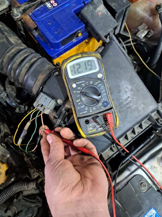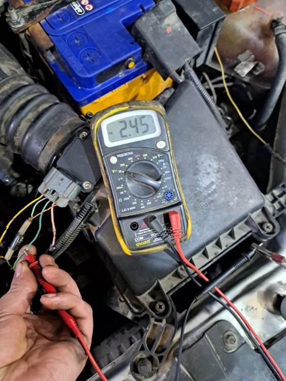 если фишку с датчика снять и замерить на заведенной то на зелено синем и желтом проводе напряжение 4,97в- лада калина автомат м74CAN(ДМРВ)