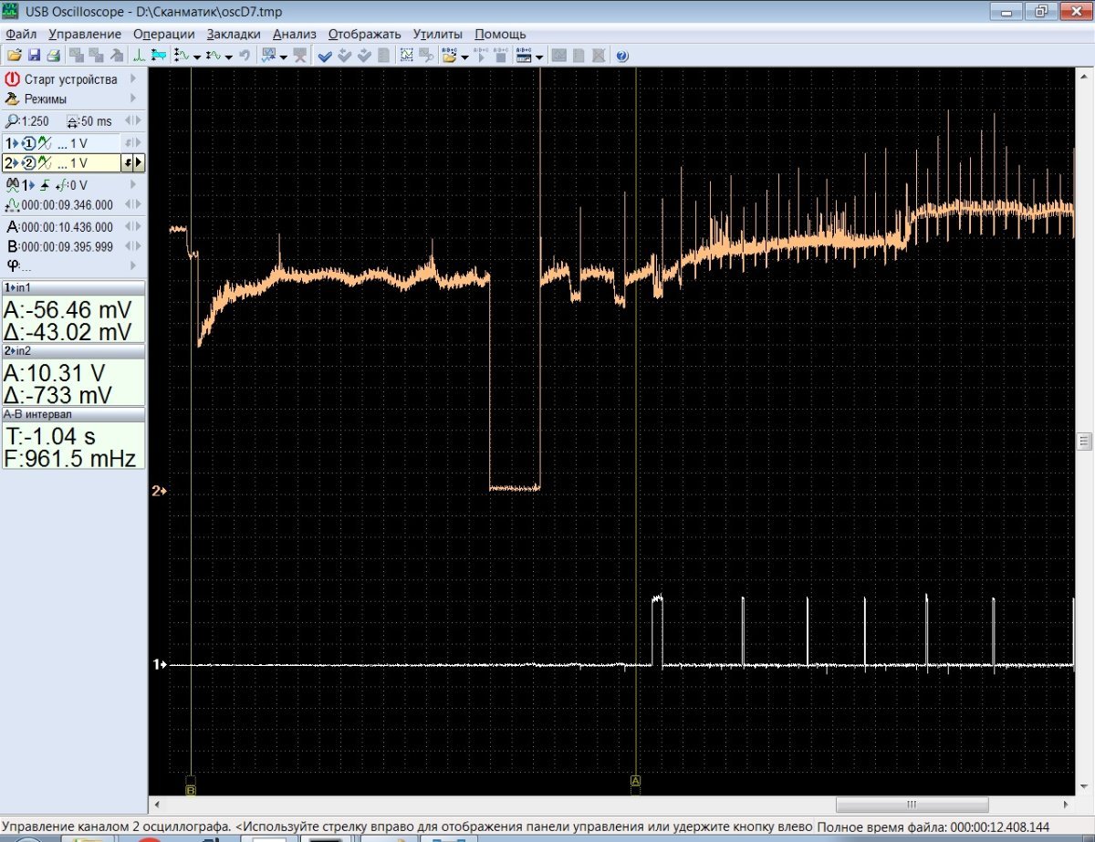 Alexxandr Опубликовано 1 час назад Опубликовано 1 час назад Предыстория такая. Автомобиль мог ездить несколько дней без всяких проблем. Мог просто заглохнуть на ходу, но при этом пропадала тяга, а за тем двигатель глох . Иногда помогало снятие клеммы АКБ, иногда просто простояв несколько часов могла завестись. Бывало,что заводилась но не реагировала на газ. В итоге её притащили мне. При попытке соединится с моторником выдавало ошибку связи. Все остальные блоки нормально диагностировались. Для начала попытался найти схему, но схему с таким эбу найти не получилось. Схемы в мотордате и книге от легион автодата под блоки в которых в разъёмах по три ряда пинов, а на этом 4 ряда. Опытным путём были проверены массы и питание эбу. Главное реле включается, питание на катушках, форсунках есть. Насос работает Подключил осцилограф к управлению катушки зажигания и форсунке. На осцилограмах видно, что управление на катушку приходит всегда, а на форсунке появляется отрицательный импульс, а за тем сходит на нет. Если принудительно подавать бензин во впуск, мотор работает. Заказали другой блок цифра в цифру. Новый блок сразу вышел на связь. Висела ошибка по синхронизации с иммо (точно не запомнил). Сделал синхронизацию перемычкой. Попробовал завести, тоже самое, но после этого блок на связь больше не вышел. Может у кого есть схемы на данный авто? Буду благодарен за любую помощь и мысли по данному авто.